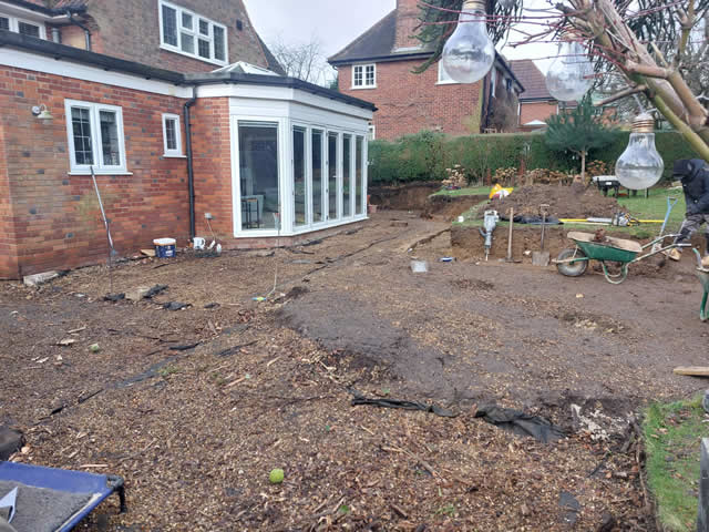 Digging out and preparing for a Porcelain Patio in Welwyn Garden City