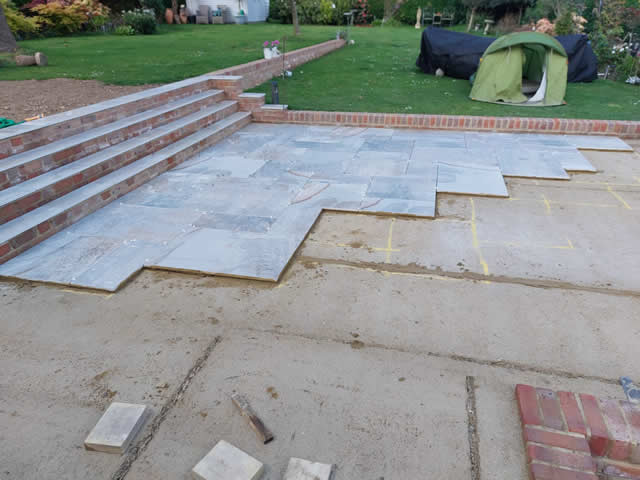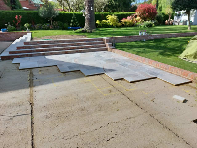 On a pre prepared concrete base for a Porcelain Patio in WGC
