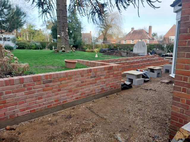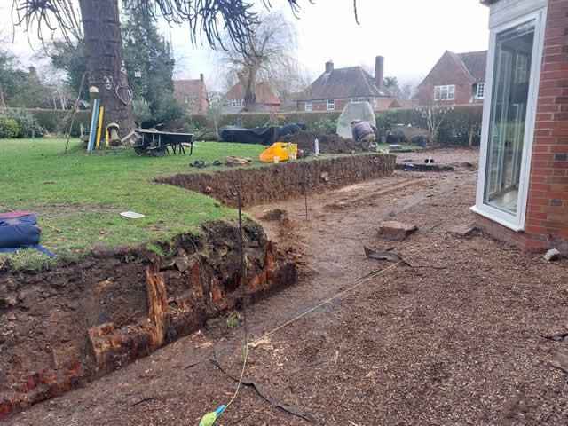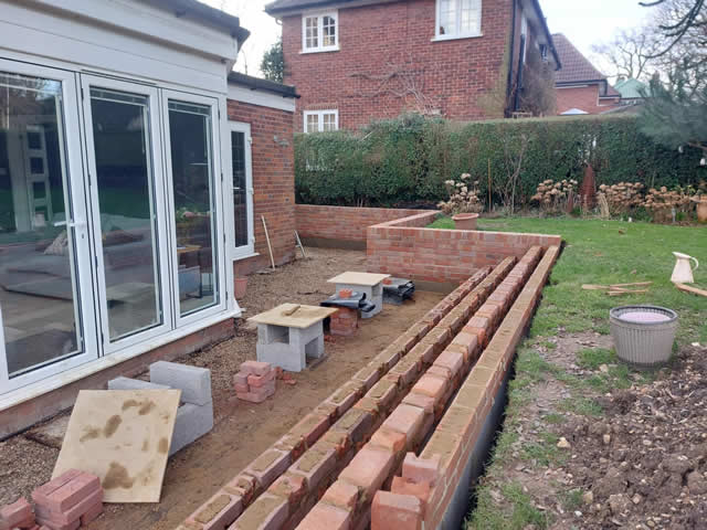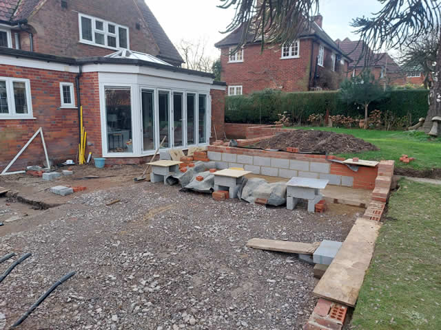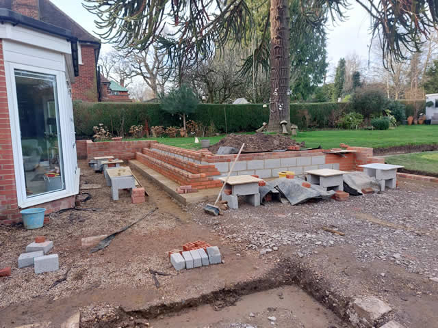 Installing Footings and retaining wall for a Porcelain Patio in Welwyn Garden City